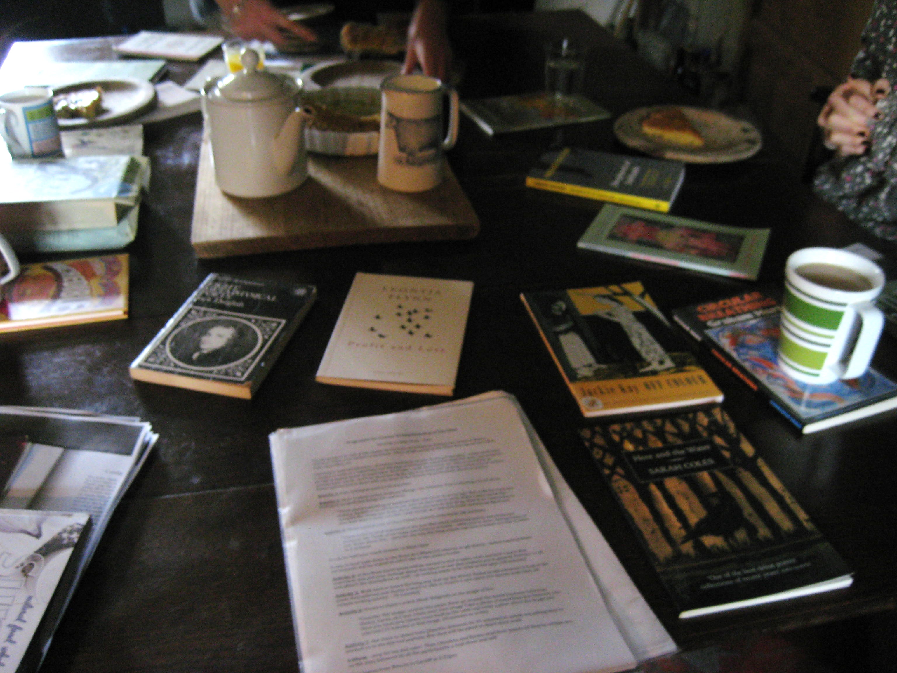 For this workshop Emma and I shared some of what we love about poetry – the sounds, the images, the narratives, and the way it turns ordinary things into something significant. We used pieces from Richard Gwyn, clare e. potter, and Ruth Bidgood to illustrate these points and elicit responses from the group. We even built-in some time to head down to the river and just read. Even I got to watch the water and thumb through Robert Hass’ collected works and The Yellow Table by Alicia Stubbersfield. What a luxury.